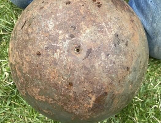 Found a giant ~150 lb. steel ball in a creek near my house. It has tiny boreholes and leaked black liquid when we rolled it around. Any ideas? Check the comments for the answer…See More